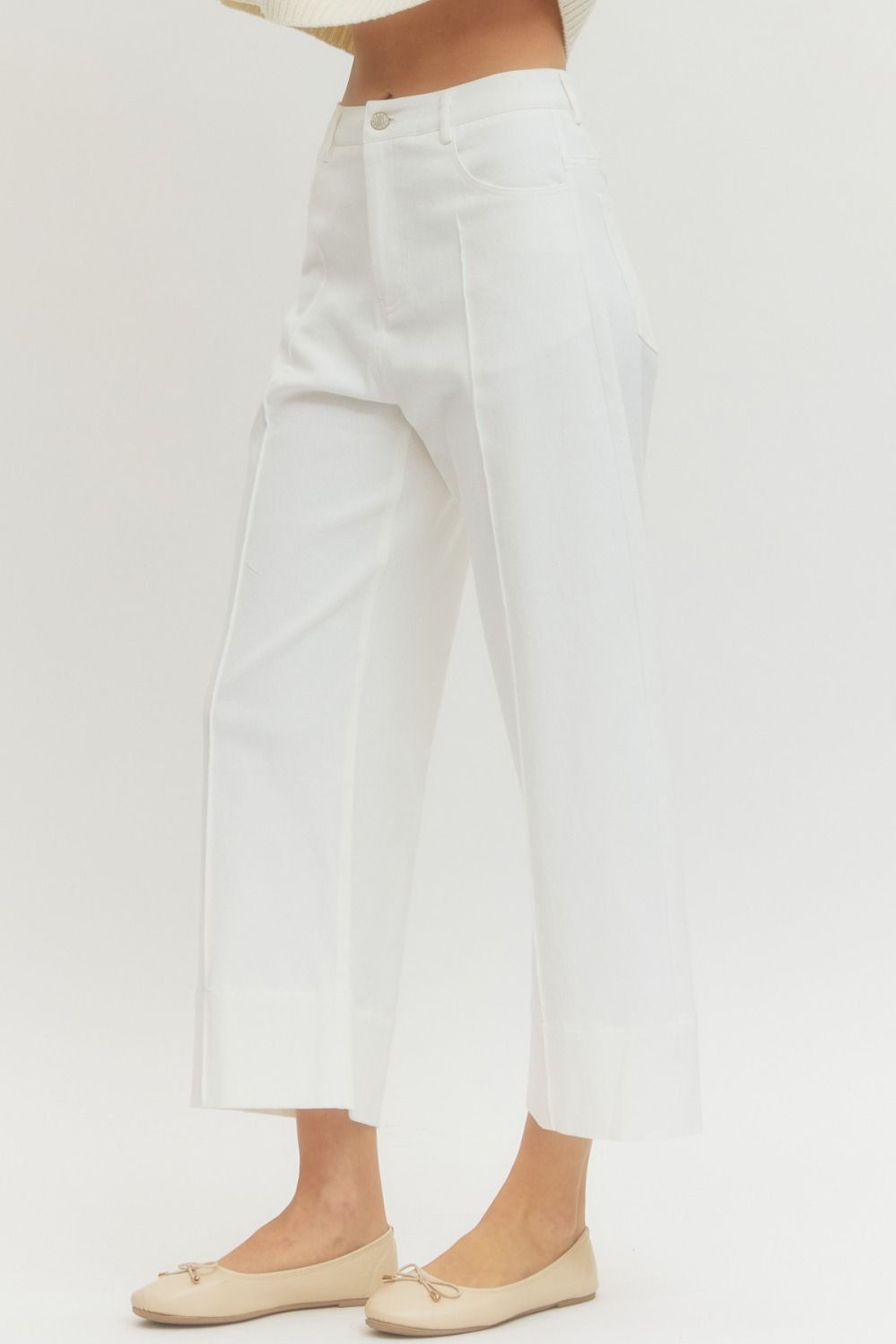 Elevate your warm-weather wardrobe with this stunning white pintuck wide-leg crop pant. Crafted from breathable cotton with perfect stretch, it features charming pintuck detail that add dimension and style. The style captures the essence of summer while the relaxed silhouette keeps you comfortable and effortlessly chic. Whether you're heading to brunch or a casual night out, this on-trend piece is your new go-to for looking put-together without trying too hard.